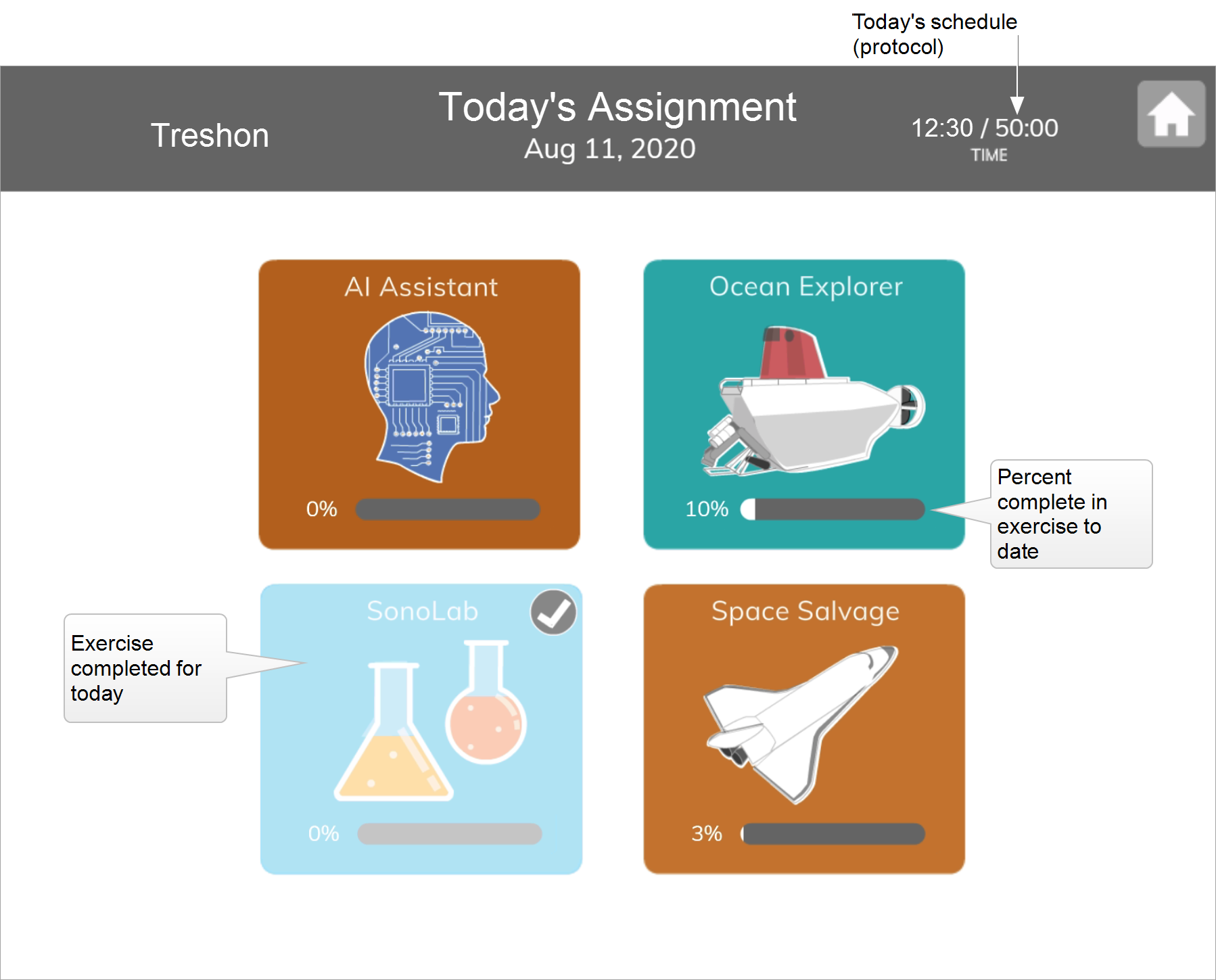 - Click the Home button to exit the exercise and return to Today’s Assignments